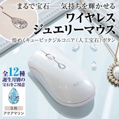 EGRET ワイヤレスジュエリーマウス 誕生月別の人口宝石ボタン 3月 アクアマリン EM23-SJ-3 【同梱不可】[▲][AS]