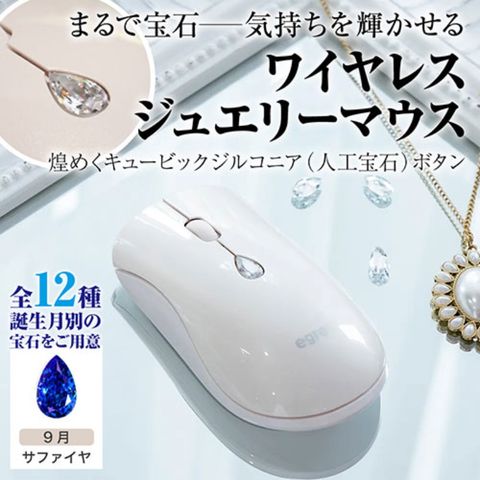 EGRET ワイヤレスジュエリーマウス 誕生月別の人口宝石ボタン 9月 サファイヤ EM23-SJ-9 【同梱不可】[▲][AS]