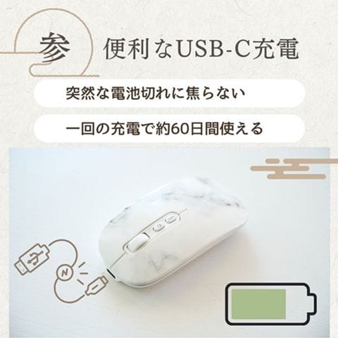 ビジネスハーモニー 大理石柄ワイヤレスマウス 充電 静音 Bluetooth接続 日本の伝統美を感じさせる上品なデザイン 大理石柄 EM23-P4 【同梱不可】[▲][AS]
