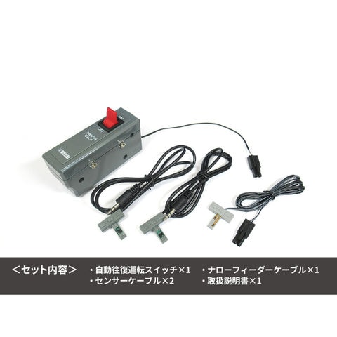 | C006 (Z) 自動往復運転スイッチ Zゲージ 【セット内容】 自動往復運転スイッチ×1個、ナローフィーダーケーブル×1本、センサーケーブル×2 【サイズ】 PKGサイズ、寸法 (高さ×奥行×横幅)17×4×10(cm) 本体サイズ、寸法 (高さ×奥行×横幅)6×9.5×3(cm) 素材 ABS、PCB基板 【特徴】 ロクハンZゲージの特徴 眺めて、集めて、そして走りも楽しむことのできる極小スケールの鉄道模型、それがロクハンZゲージです。 1/220サイズならではの精密さや、小ささを活かしA4サイズでもレイアウトを楽しめるのがZゲージ最大の特徴です。 車両はもちろん、レール、ストラクチャー,アクセサリー等も豊富にラインアップ!! 【商品の特徴や使い方等】 RC-02/RC-03トレインコントローラー(別売)専用です。センサー(フォトリフレクタ)によって自動で折り返し、往復運転を行うスイッチです。 「センサーケーブル」の上を車両が通過すると減速、停止。折り返し走行します。 上級者向けとして、内部の基盤をカッターで加工する事によって、加速時間、減速時間、停車時間の設定が可能になります。 ※モーターの仕様等が異なる一部他社製Zゲージでは、正常に動作しない場合がございます。 ※注意事項 対象年齢15歳以上 Made in china |