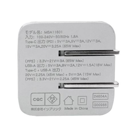 インプリンク PD対応 USB充電器 Sheerカラー Type-C 1ポート 65W ホワイト IMACHCL65WH 【同梱不可】[▲][AS]