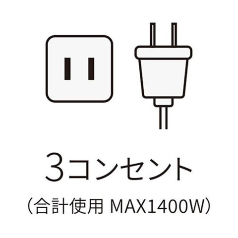 定格入力 : AC100V-240V 定格出力 : (コンセント)100V/合計1400W (USB)DC5V/合計2.4A(1ポート最大2.4A) 差込口 : コンセント×3/USB Type-A(メス)×2 コード長 : 約1m
