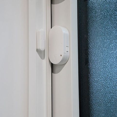設置したドアや窓が開くとセンサーが感知して音を鳴らす、防犯アラーム本体と磁気センサーがセットになっており、センサーの距離が3cm以上離れると音が鳴る仕組みです。