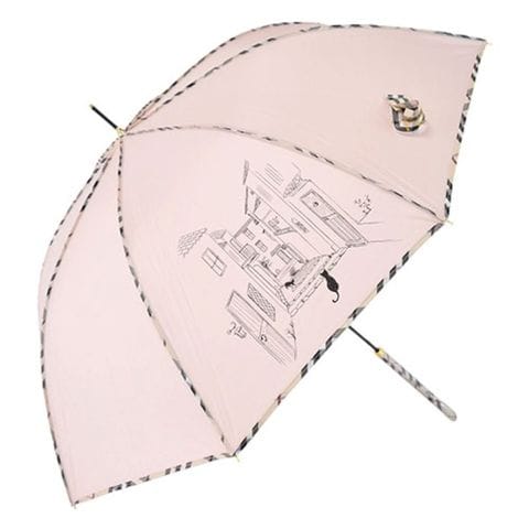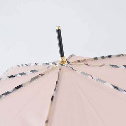 手元と傘を留めるネームバンドにも先染めチェック生地を組み合わせて、シンプルかわいいトラッドテイストの雨傘です。
