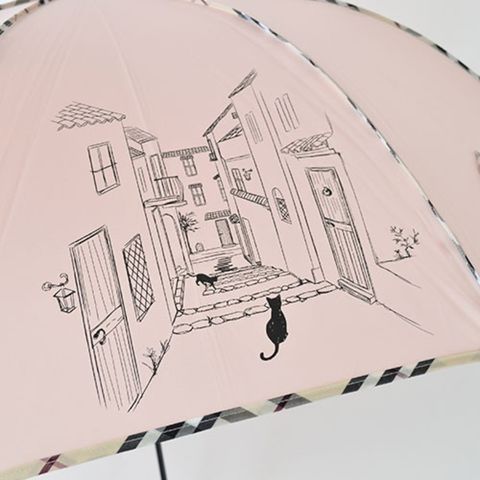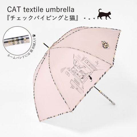 三国 MKN 60cm耐風ジャンプ傘 チェックパイピングと猫 ピンク A1112006 【同梱不可】[▲][AS]