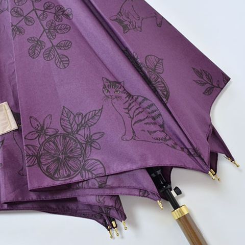 傘を留めるネームバンドにはシリーズ共通の金糸の猫刺繍&猫のあしあとホックボタン付きになっていて、猫好きさんにおすすめ!