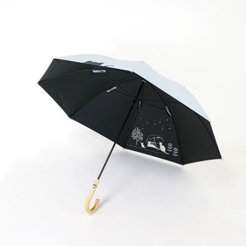 三国 MKN 遮光&遮熱 黒コーティング傘 50cm 手開き 傘と猫 サックス S1517473 【同梱不可】[▲][AS]