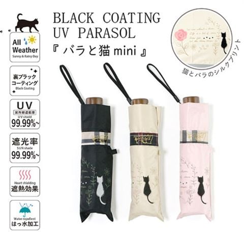三国 MKN 遮光&遮熱 黒コーティング傘 50cm 楽ミニ バラと猫 mini ベージュ S2517515 【同梱不可】[▲][AS]