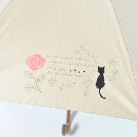 シンプルな無地に、1駒にバラと猫さんのシルクプリントのベーシックスタイルな晴雨兼用傘です。