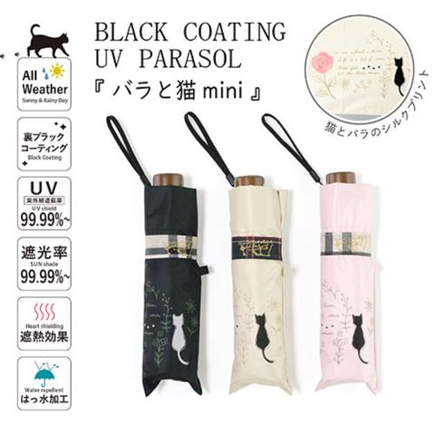 三国 MKN 遮光&遮熱 黒コーティング傘 50cm 楽ミニ バラと猫 mini ピンク S2517506 【同梱不可】[▲][AS]