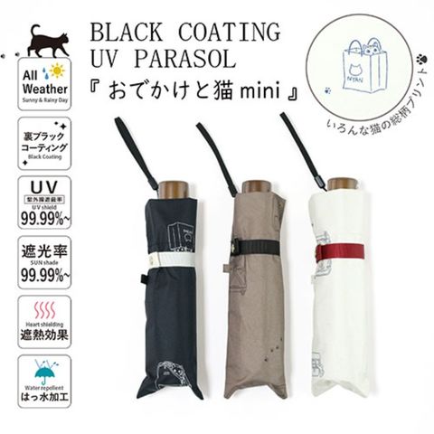 三国 MKN 遮光&遮熱 黒コーティング傘 50cm 楽ミニ おでかけと猫 mini オフホワイト S2517601 【同梱不可】[▲][AS]