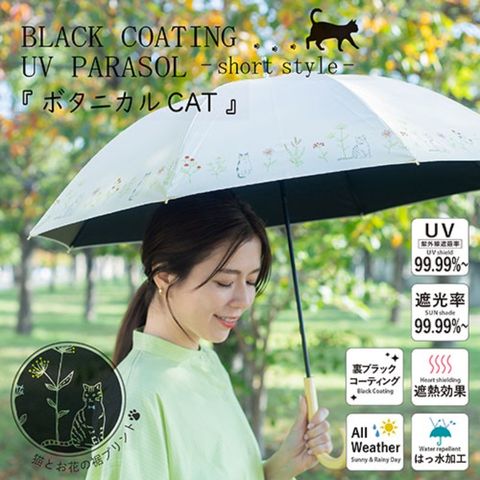三国 MKN 遮光&遮熱 黒コーティング傘 50cm 手開き ボタニカルCAT イエロー S1512411 【同梱不可】[▲][AS]