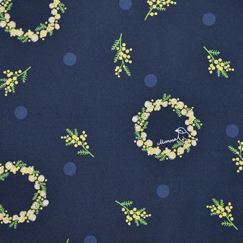 毎年人気のミモザモチーフの晴雨兼用傘が、今年は丸い輪っかなリースデザインがかわいい総柄のミモザプリントになりました。