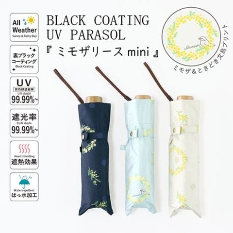 三国 MKN 遮光&遮熱 黒コーティング傘 50cm 楽ミニ ミモザリース mini くすみブルー S2517774 【同梱不可】[▲][AS]
