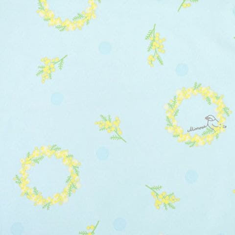 毎年人気のミモザモチーフの晴雨兼用傘が、今年は丸い輪っかなリースデザインがかわいい総柄のミモザプリントになりました。