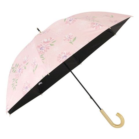 柔らかな水彩風の花柄プリントの裏ブラックコーティング晴雨兼用傘です。
