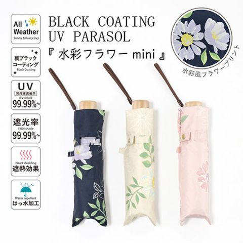三国 MKN 遮光&遮熱 黒コーティング傘 50cm 楽ミニ 水彩フラワー mini アイボリー S2517924 【同梱不可】[▲][AS]