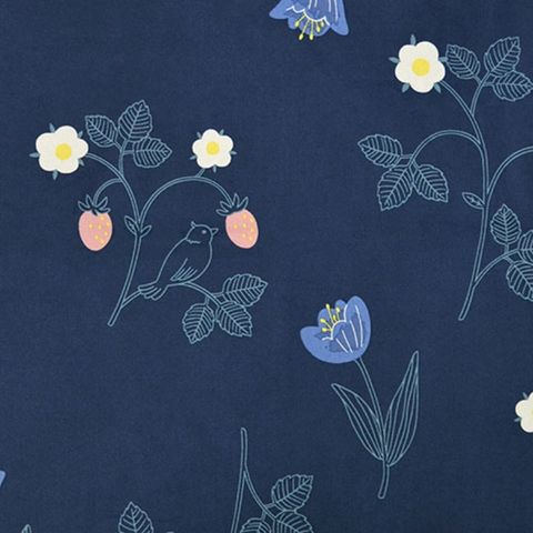 かわいい苺とチューリップ、そして小鳥さんがとっても春らしい、かわいい裏ブラックコーティング晴雨兼用傘です。