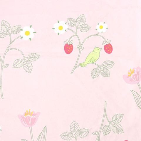 かわいい苺とチューリップ、そして小鳥さんがとっても春らしい、かわいい裏ブラックコーティング晴雨兼用折りたたみ傘です。