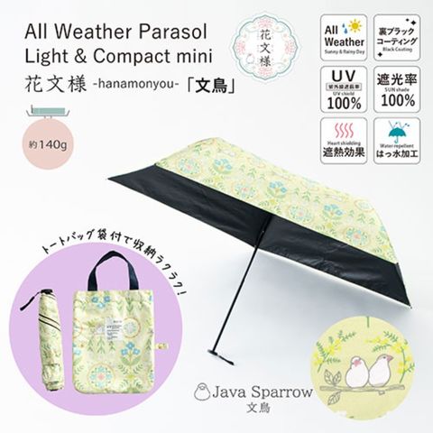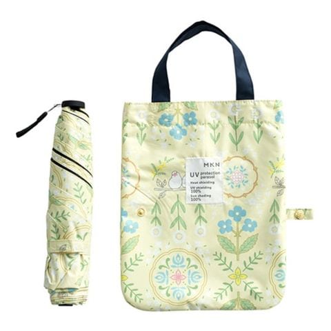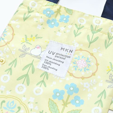 三国 MKN 遮光&遮熱 黒PU傘 50cm 軽量コンパクトミニ 花文様・文鳥(トートバッグ) イエロー S3518611 【同梱不可】[▲][AS]