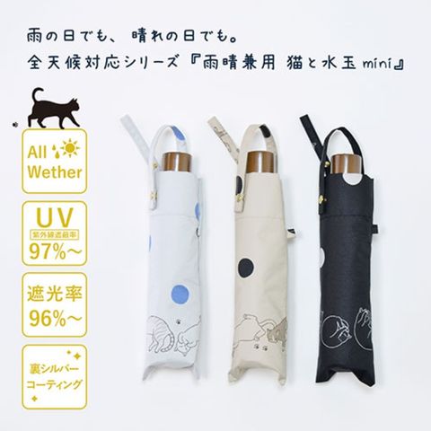 三国 MKN シルバーコーティング 雨晴兼用 55cm耐風楽ミニ傘 猫と水玉 ブラック S2712002 【同梱不可】[▲][AS]