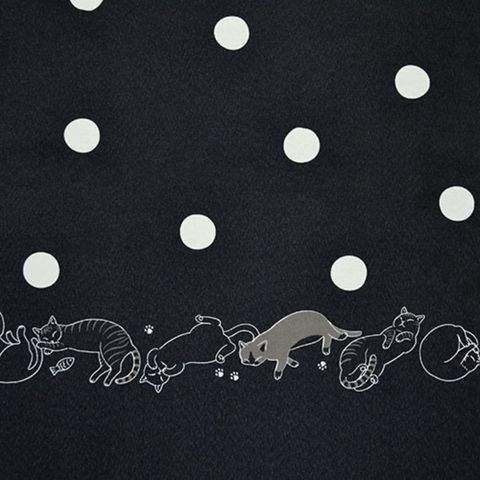 定番水玉プリント×ごろんといろんな格好で寝ている猫ちゃん達が裾にプリントされている、人気の猫柄雨晴兼用傘です。