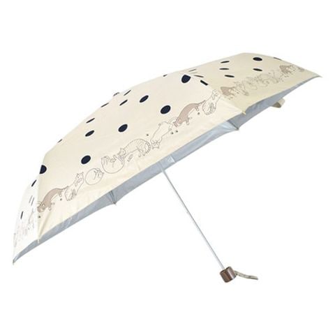 三国 MKN シルバーコーティング 雨晴兼用 55cm耐風楽ミニ傘 猫と水玉 ベージュ S2712015 【同梱不可】[▲][AS]