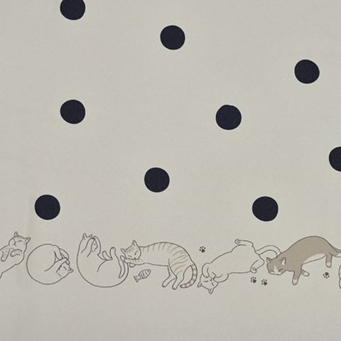 定番水玉プリント×ごろんといろんな格好で寝ている猫ちゃん達が裾にプリントされている、人気の猫柄雨晴兼用傘です。