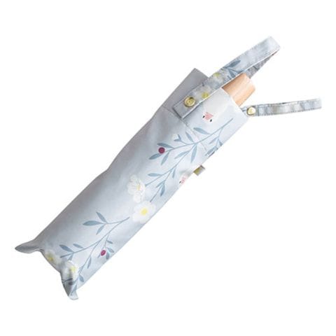 共袋の持ち手部分は片側がホックボタンで取り外し可能なので、バッグ等に留めることもできてとっても便利な折りたたみ傘です。