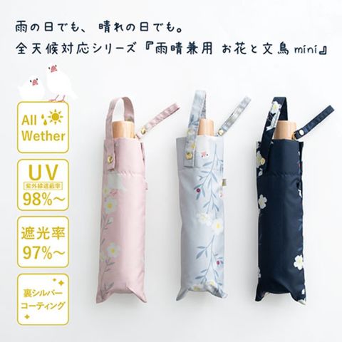 三国 MKN シルバーコーティング 雨晴兼用 55cm耐風楽ミニ傘 お花と文鳥 グレー S2712103 【同梱不可】[▲][AS]