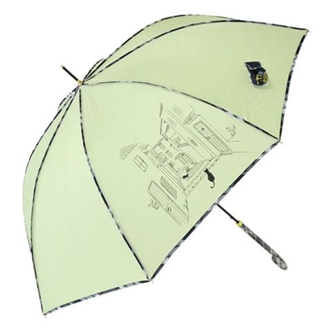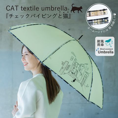 三国 MKN 60cm耐風ジャンプ傘 チェックパイピングと猫 グリーン A1112010 【同梱不可】[▲][AS]