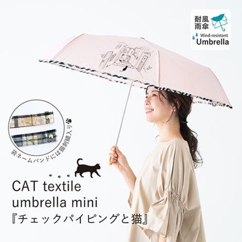 三国 MKN 55cm耐風楽ミニ傘 チェックパイピングと猫 グリーン A2114310 【同梱不可】[▲][AS]
