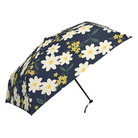 白い大きめのお花プリントに、アクセントで小さめのお花を組み合わせた、大人かわいいデザインの折りたたみ雨傘です。