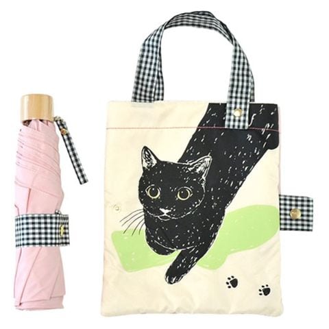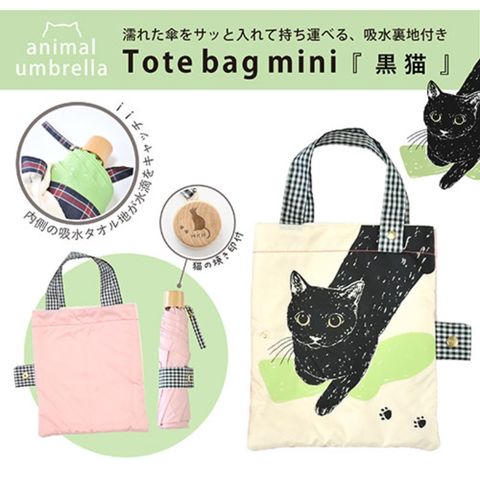 三国 MKN 55cm耐風楽ミニ傘 吸水トートバッグ袋付 黒猫 ピンク S2913806 【同梱不可】[▲][AS]