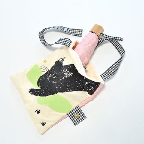 折りたたみ傘本体はベーシックな無地にワンポイントで黒猫のシルエットをプリントしています。