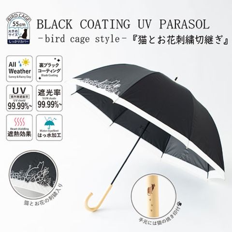 2022s/sで大人気だった黒コーティング晴雨兼用傘の「猫とお花刺繍」がリニューアルで再登場です!