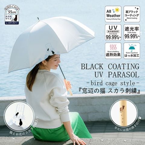 三国 MKN 遮光&遮熱 黒コーティング傘 55cm手開き 窓辺の猫 スカラ刺繍 オフホワイト S1519201 【同梱不可】[▲][AS]
