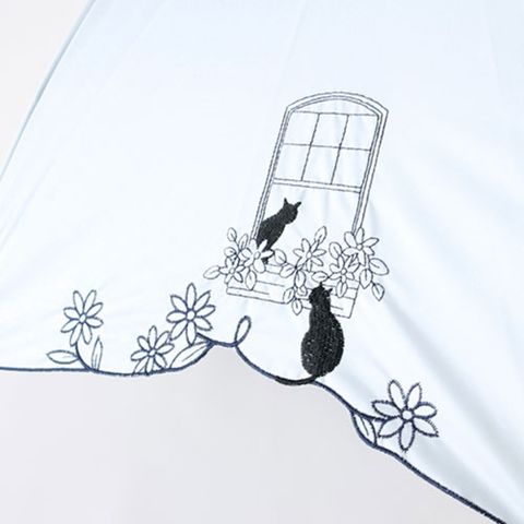 三国 MKN 遮光&遮熱 黒コーティング傘 55cm手開き 窓辺の猫 スカラ刺繍 サックス S1519273 【同梱不可】[▲][AS]