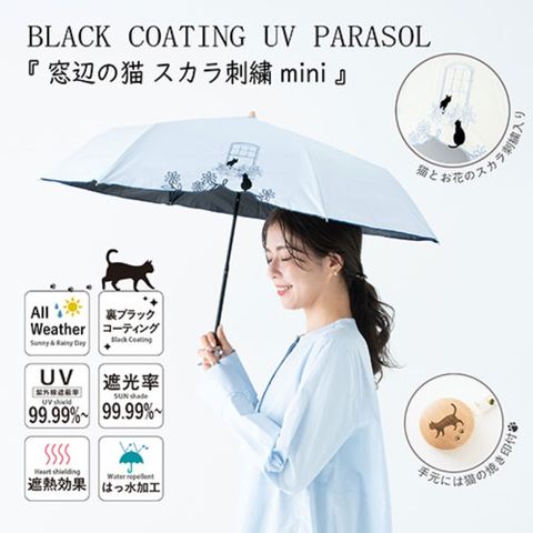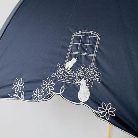 三国 MKN 遮光&遮熱 黒コーティング傘 50cm 楽ミニ 窓辺の猫 スカラ刺繍 mini ネイビー S2519204 【同梱不可】[▲][AS]