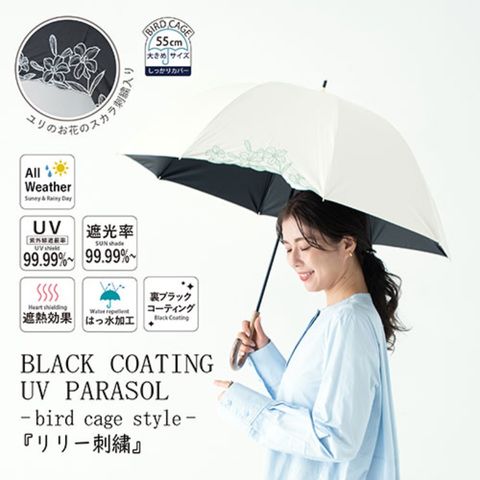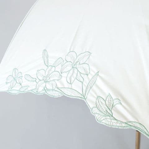 三国 MKN 遮光&遮熱 黒コーティング傘 55cm手開き リリー刺繍 オフホワイト S1519301 【同梱不可】[▲][AS]