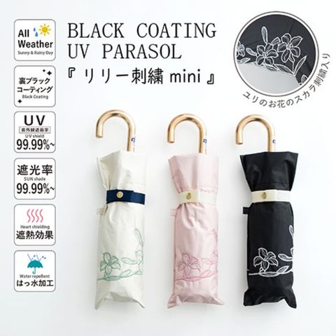 三国 MKN 遮光&遮熱 黒コーティング傘 50cm 楽ミニ リリー刺繍 mini ブラック S2519302 【同梱不可】[▲][AS]