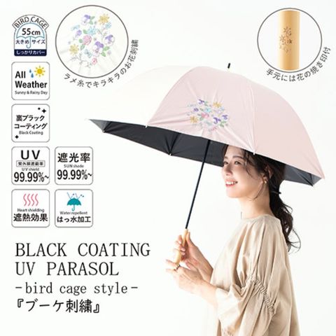 生地裏面に黒のポリウレタンコーティング加工を施しており、遮光&紫外線遮蔽率&遮熱効果に優れた(※)機能性パラソル。