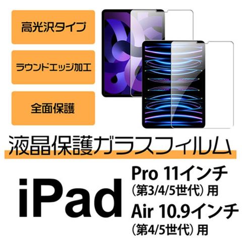 iPad Pro 第4/3/2/1世代 iPad Air 第5/4世代 11インチ用 高光沢保護ガラスフィルム