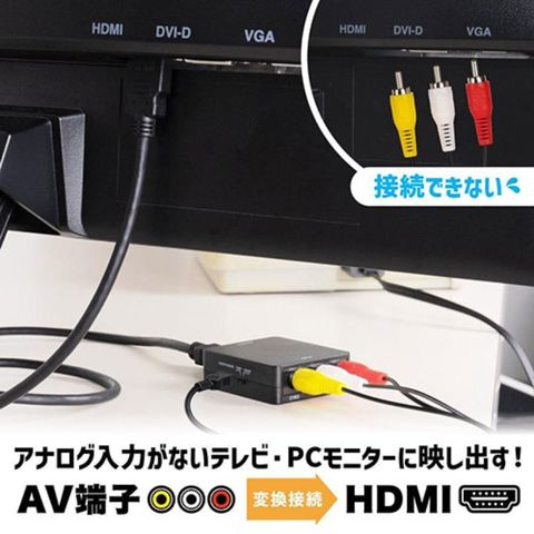 ■AV端子(赤白黄)ケーブルからの出力をHDMI出力へ変換!