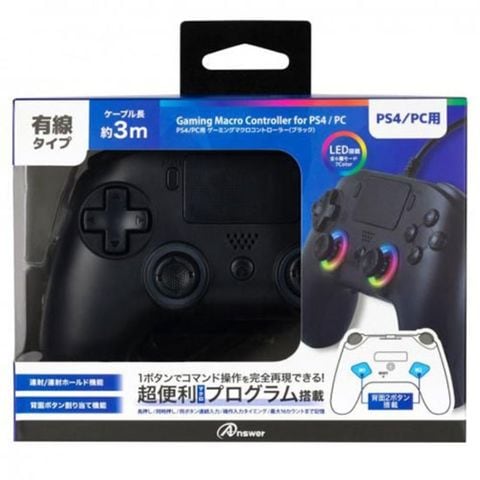 アンサー PS4/PC用 有線ゲーミングマクロコントローラー イヤホンジャック・RGB点灯・連射機能 ケーブル3m ANS-PF071BK 【同梱不可】[▲][AS]