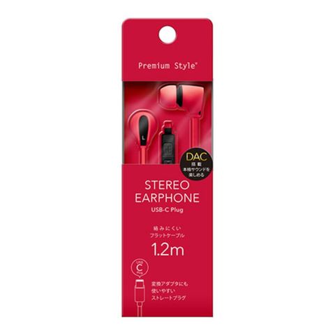 PGA USB Type-Cコネクタ ステレオイヤホン カナルタイプ レッド PG-SECE4RD1 【同梱不可】[▲][AS]