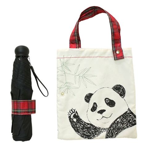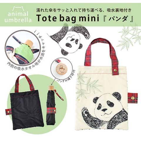 やあっ!!ととぼけた「パンダ」がなんともかわいい、トートバッグ袋付の折りたたみ傘です。