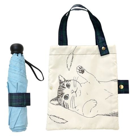 猫じゃらしで遊ぶ「トラ猫」に癒されるトートバッグ袋付の折りたたみ傘です。