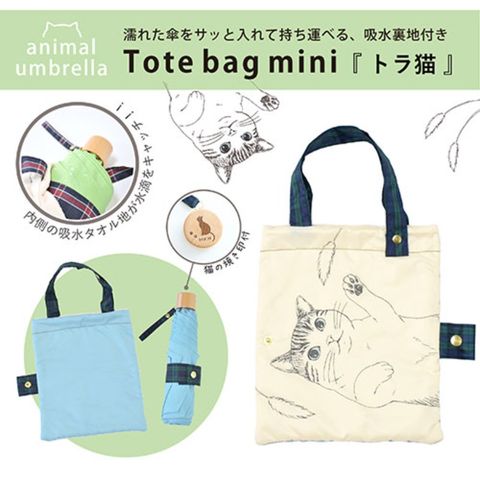 三国 MKN 55cm耐風楽ミニ傘 吸水トートバッグ袋付 トラ猫 ライトブルー S2112871 【同梱不可】[▲][AS]