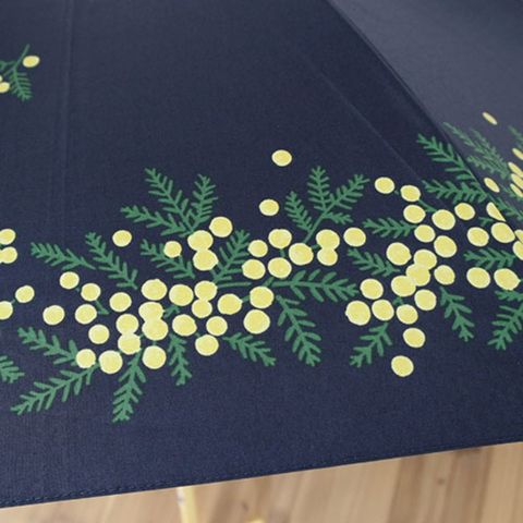 三国 MKN 遮光&遮熱 黒コーティング傘 50cm 手開き ミモザの花 ネイビー S1514104 【同梱不可】[▲][AS]